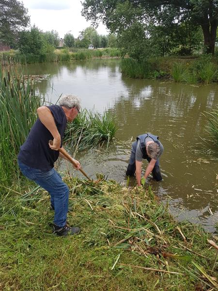 Diverse foto's die zijn gemaakt tijdens werkzaamheden uitgevoerd door het bestuur en vrijwilligers, aan onze visvijvers.